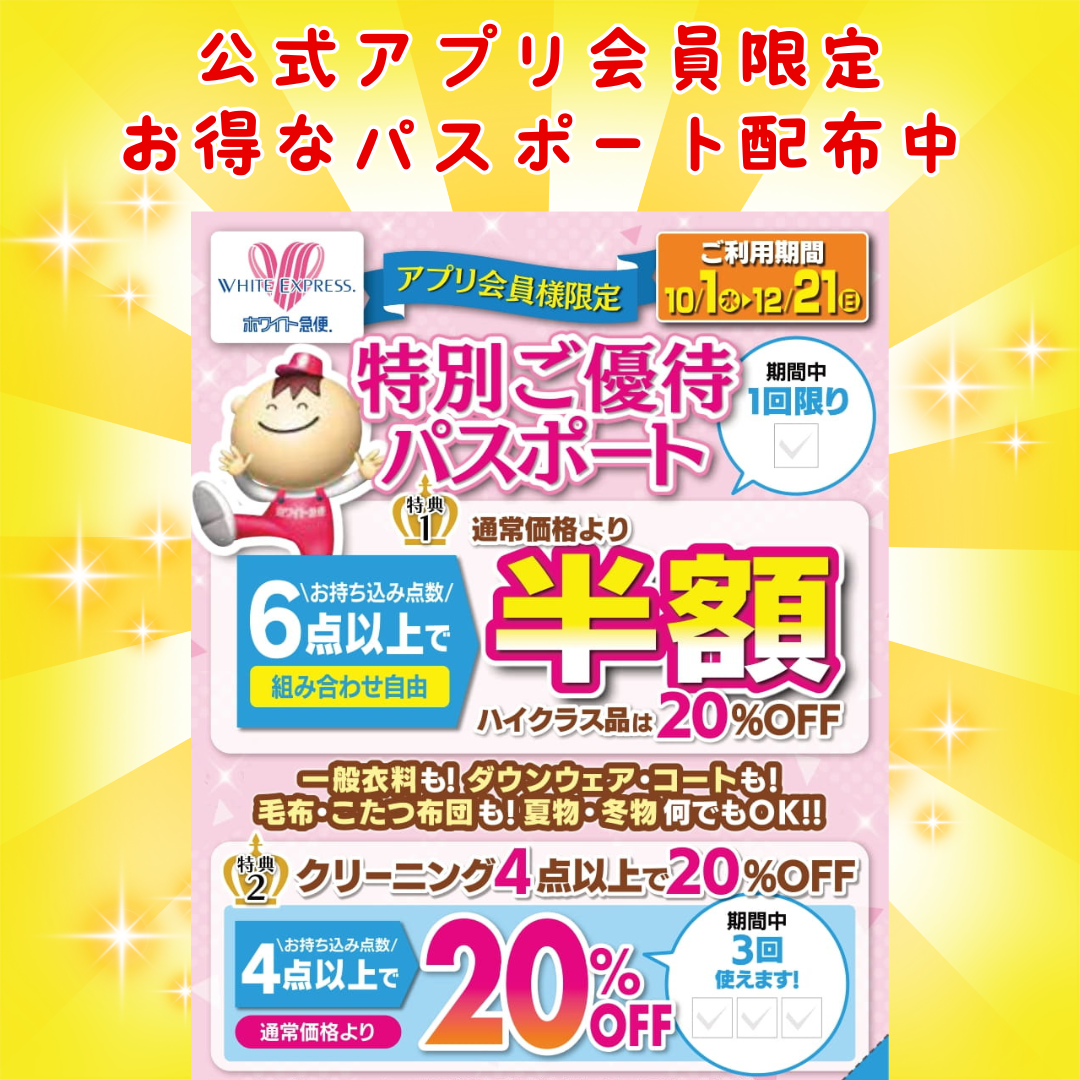10月はとってもお得なアプリ会員様限定の「特別ご優待パスポート」をプレゼント!