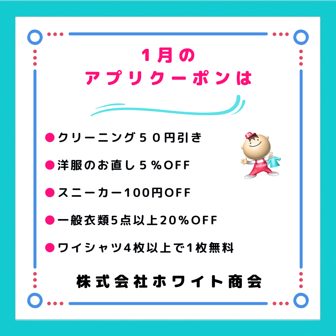 2026年最初のアプリクーポンを発行しました。1月もお得なクーポンを是非ご利用ください‼️